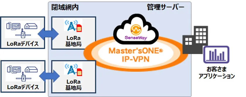 センスウェイが提供するLoRaWANサービス「SenseWay Mission Connect」にNTTPCのMaster’sONE IP-VPN閉域網を活用することで、IoTで機密性の高いデータを取り扱う自治体、製造業、建設業などセキュリティを重視するお客さま向けに、セキュアな閉域網で接続できるLoRaWANサービスを実現します。