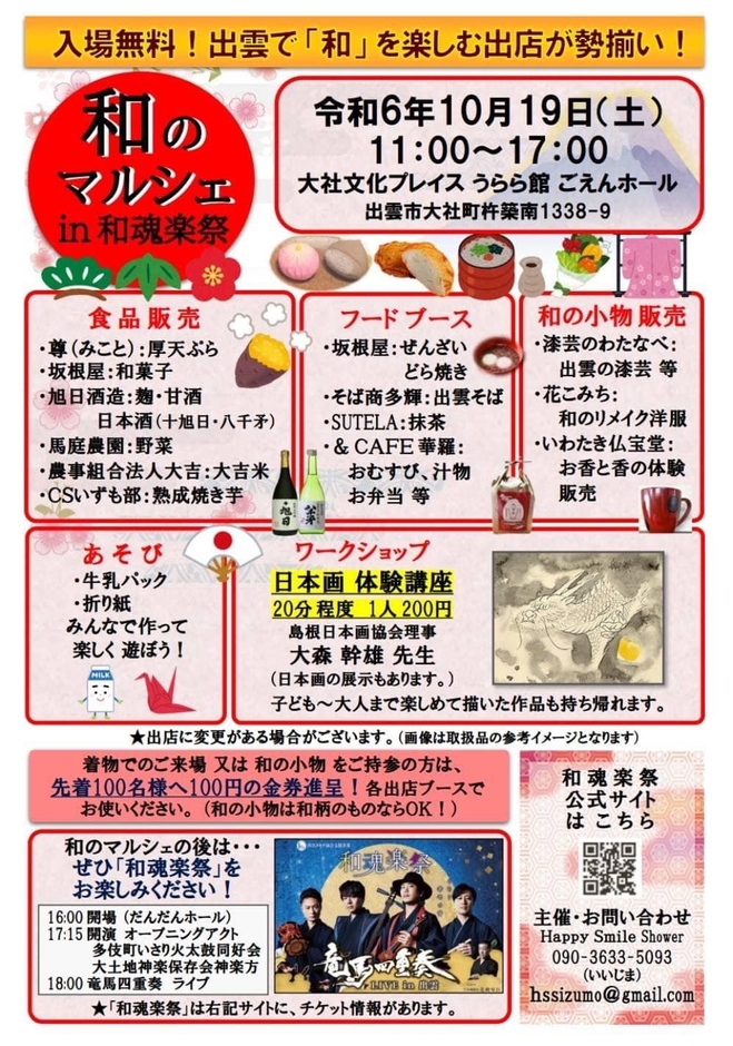 ◆第1部は「和のマルシェ in 和魂楽祭」開催(入場無料)11:00~17:30