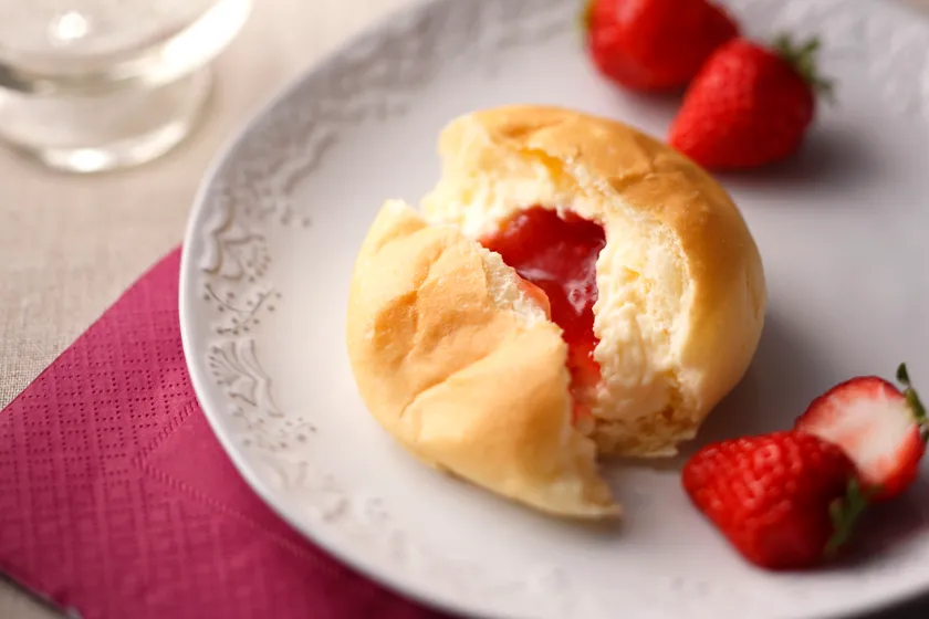 つぶつぶの果肉がたっぷりつまった、ジューシーな「苺」のスイーツパン。