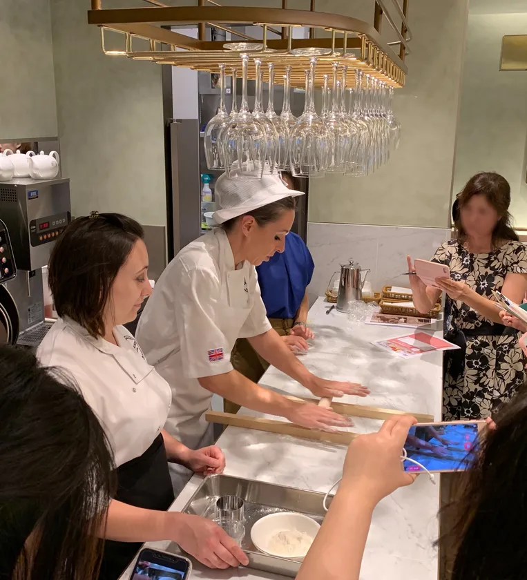 アンヌのスペシャリテであるキャラモンドは、今年ノワール・レ・ルビー・ホワイト・ゆず・抹茶と多彩なフレーバーで大好評販売中ですが、サロンイベントではお客様の目の前でアーモンドをキャラメリゼし、チョコレートをコーティングして、キャラモンドを作り上げてくれます。