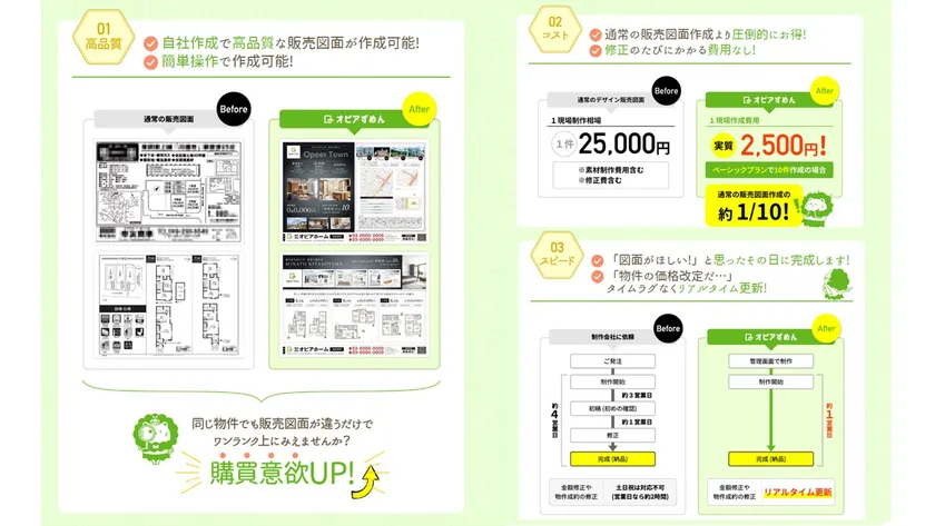 不動産業界初! 1件2,500円からの販売図面orチラシ作成クラウドサービス 「オピアずめん」サービス提供開始!