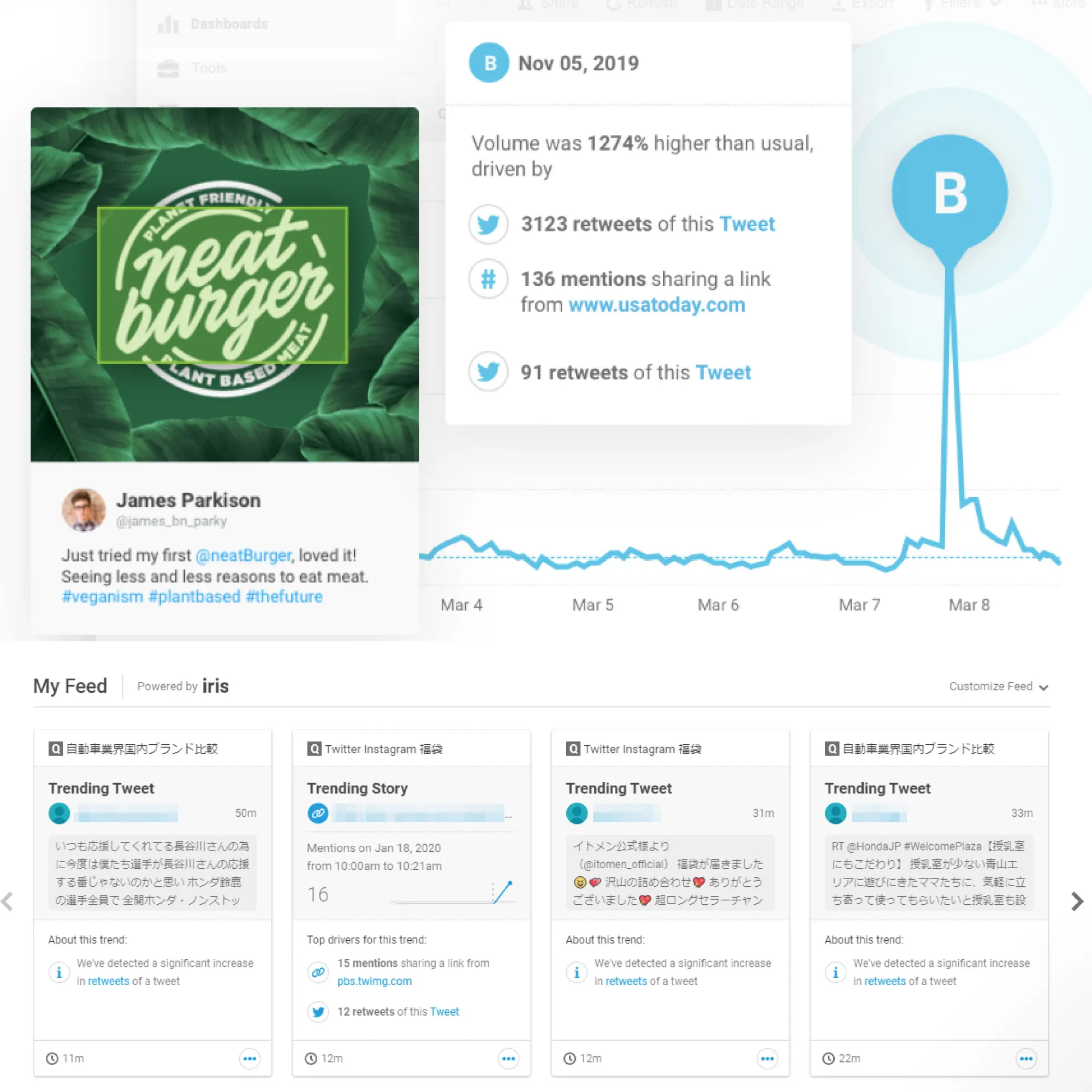 「Brandwatch」のルールベースのセグメンテーションと、「Crimson Hexagon」の機械学習アルゴリズムを組み合わせることで、他のプラットフォームにはない、柔軟で、より深く消費者のインサイトを分析できる機械学習機能を搭載しています。
