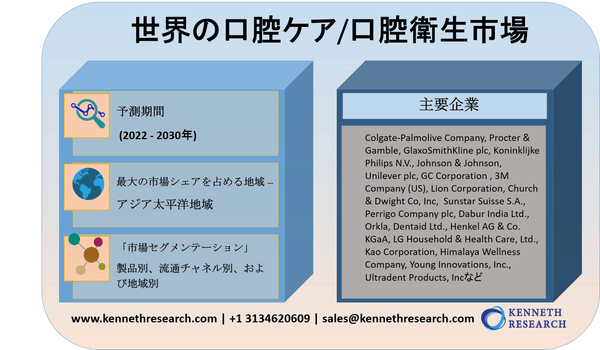 リサーチ・ネスターの一部門であるケネス・リサーチは最近、2021年12月13日に世界の口腔ケアおよび衛生市場の予測評価を提供する調査レポートを発表しました。世界の口腔ケア/口腔衛生市場における成長ドライバー、市場機会、課題、脅威など、いくつかの主要な市場ダイナミクスを強調しています。