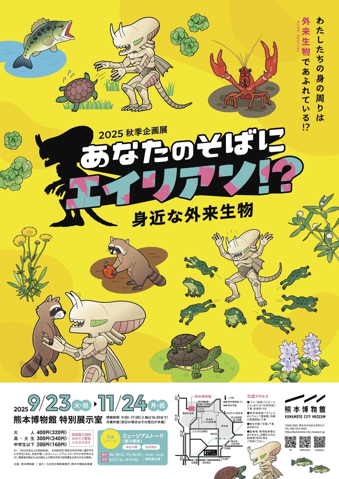 熊本博物館では現在、秋季企画展「あなたのそばにエイリアン⁉―身近な外来生物―」を開催中です。