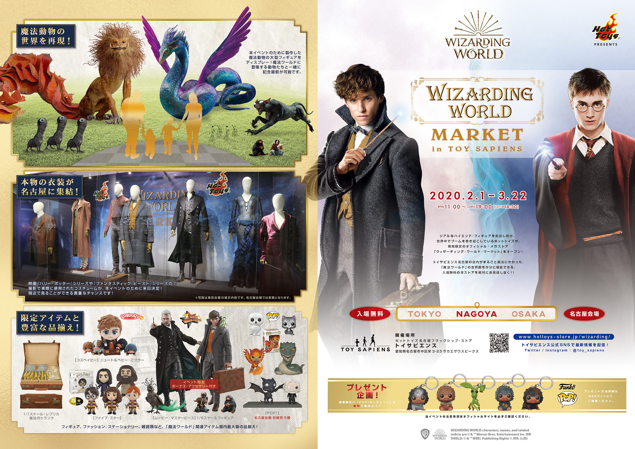 株式会社ホットトイズジャパン(所在地:東京都渋谷区、代表取締役社長:フランク・デュボア)は、ワーナー・ブラザース コンシューマープロダクツとのパートナーシップのもと、魔法ワールド オフィシャル・メガストア「ウィザーディング・ワールド・マーケット in トイサピエンス」を、2020年2月1日(土)~3月22日(日)の期間限定、入場無料にて、ホットトイズのフラッグシップ・ストア「トイサピエンス名古屋」にて開催いたします。