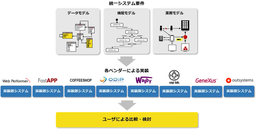 同一のシステム仕様にもとづく各種ツールでの実装版を用いた比較検討が可能に