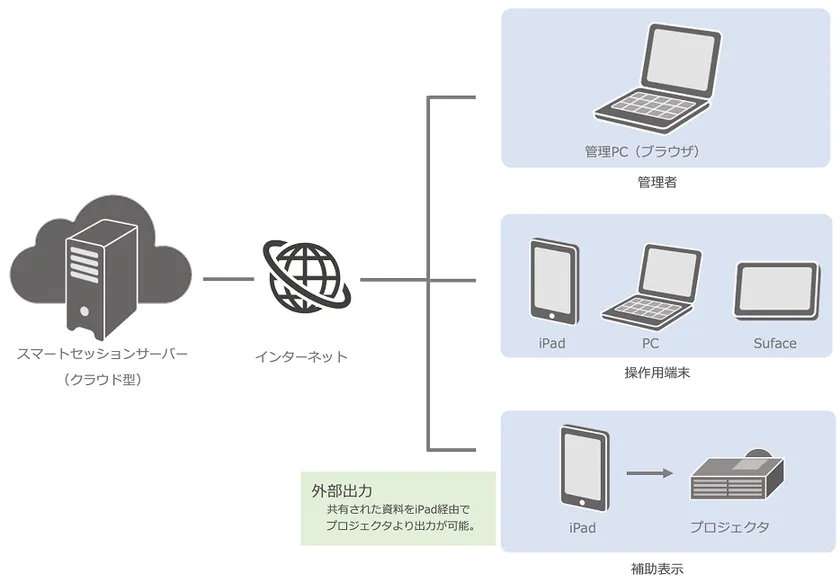 「スマートセッション」は、タブレットやPCに対応したハイブリットなペーパーレス会議システムです。
