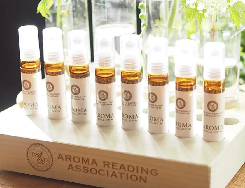 8種の香りで気分を確認しながら、その日にお供する香り選びが楽しめます。木製のディスプレイ台付き。