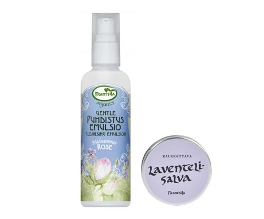 肌を保湿しながらなめらかに整えるクレンジングミルクとラベンダーの香りのマルチバームをセットに。