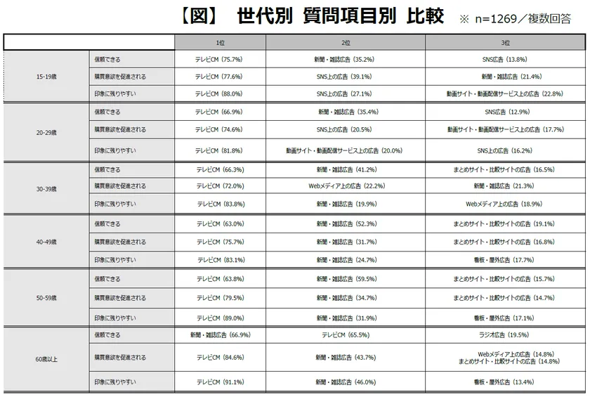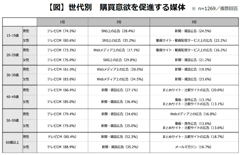 消費者1,269人に聞いた 購買意欲・印象・信頼に影響する広告媒体アンケート調査