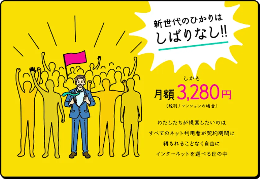 すべてのネット利用者が契約期間に縛られることなく自由にインターネットを選べる世の中を目指して、低コストで快適にご利用いただけるサービスの展開を行ってまいります。