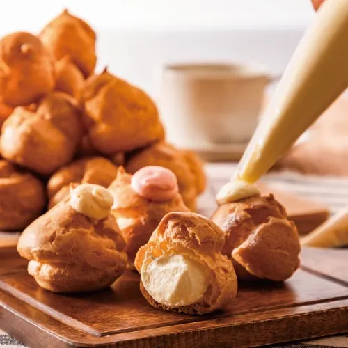 手のひらサイズのシュー生地にお好きなクリームを選べ、目の前で仕上げる“出来たて”シュークリーム。
