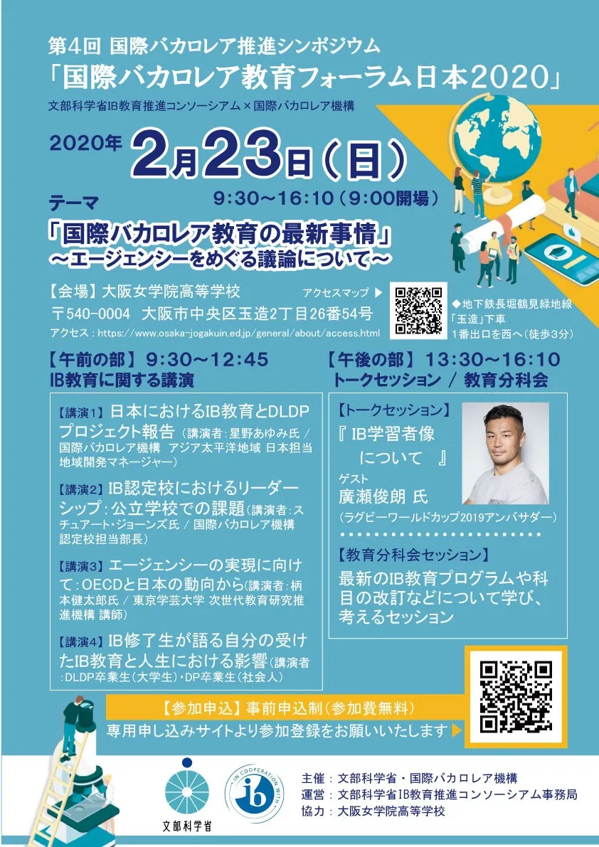 文部科学省IB教育推進コンソーシアム 第4回国際バカロレア推進シンポジウム「国際バカロレア教育フォーラム日本2020」 in 大阪 開催のご案内