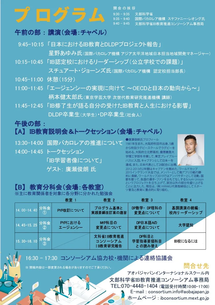 連絡先(当日):文部科学省IB教育推進コンソーシアム事務局電話:070-4448-1404