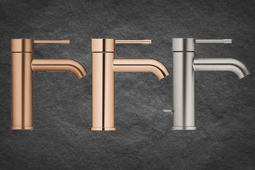 トレンドのカラー水栓は、輝きと発色が美しい鏡面仕上げと、シックで洗練されたマット仕上げの全10色を展示しております。