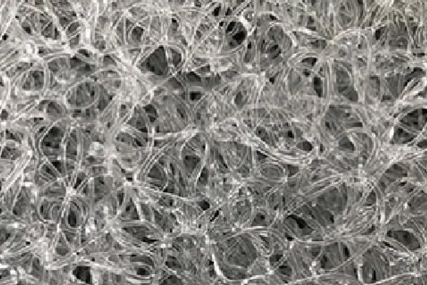 (2)最適な硬さを実現する素材「編成樹脂網状構造体」
