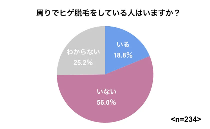 また、「周りでヒゲ脱毛をしている人はいますか?」という質問でも、「いる」と答えた人はわずか18.8%。まだ気軽におこなう人は少ないということがわかります。