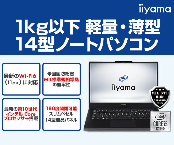 iiyama PCより、 第10世代インテル(R) Core(TM) プロセッサーを搭載し、 重量1kg以下の軽量・薄型な14型ノートパソコンを発売