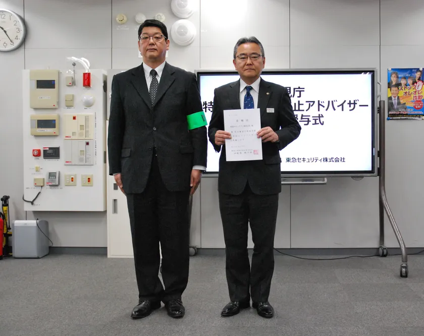 東急セキュリティ株式会社(代表取締役社長:下形 和永、以下「東急セキュリティ」)は、2020年2月7日に警視庁より「警視庁特殊詐欺被害防止アドバイザー」の委嘱状を交付され、警視庁と連携して特殊詐欺の被害を未然に防止する取り組みを開始しました。