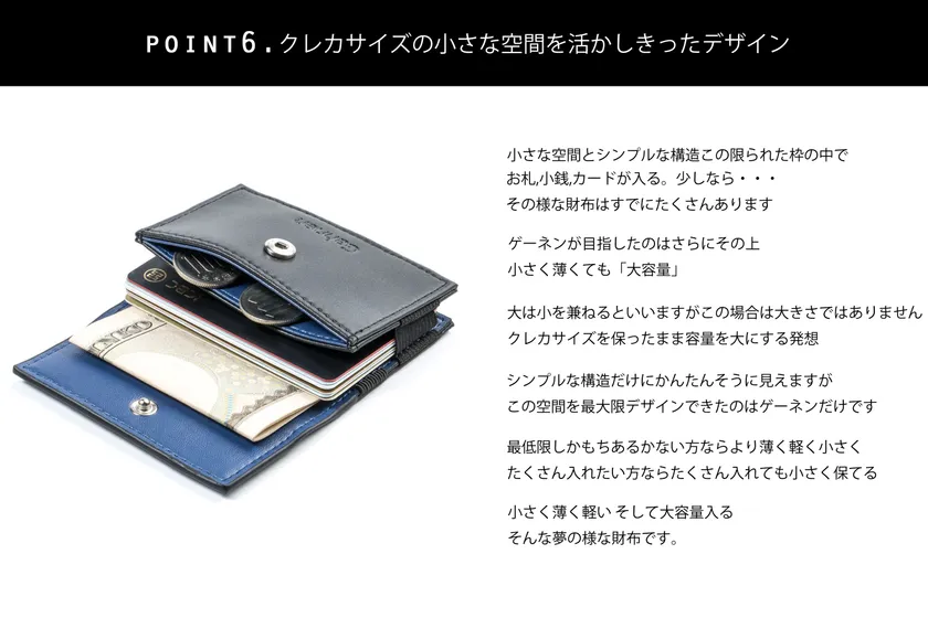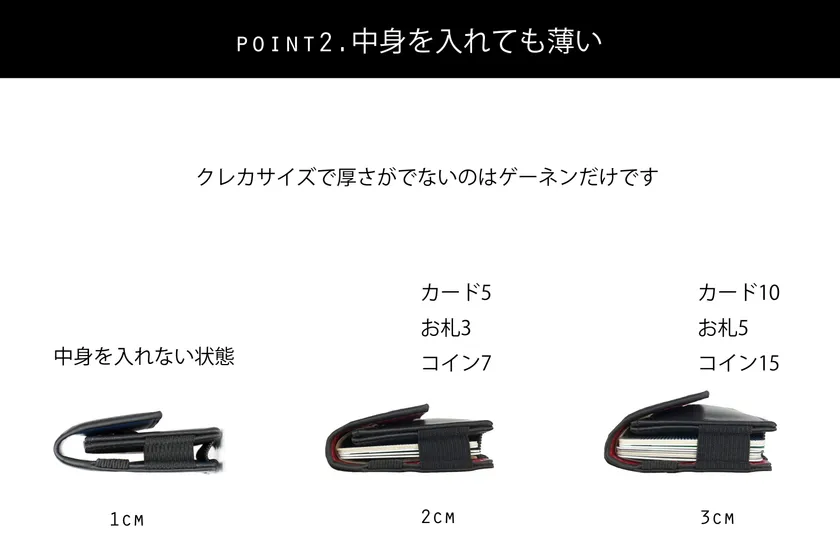 内容量 :カード10枚、小銭15枚、お札5枚(最大)