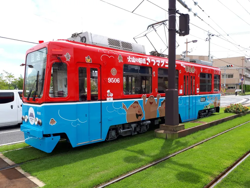 ■火山の妖精“さつマグニョン”を描いた市電「さつマグ電」も運行中!