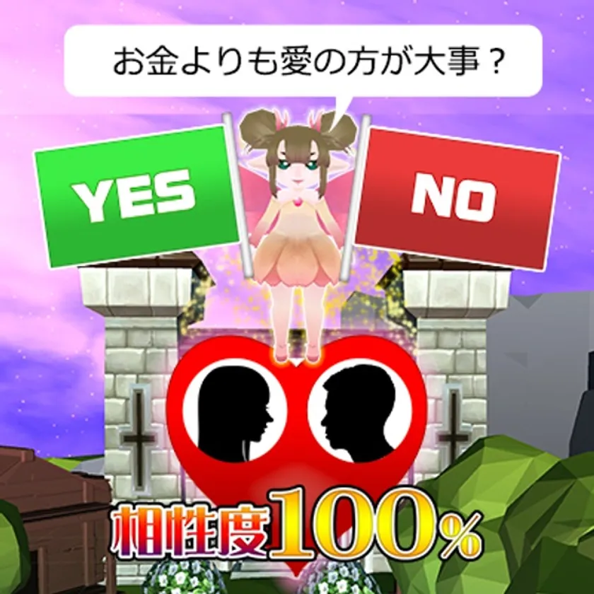 妖精が出題する10個の究極の選択で二人の相性を診断していきます(出題は毎回変わります)。