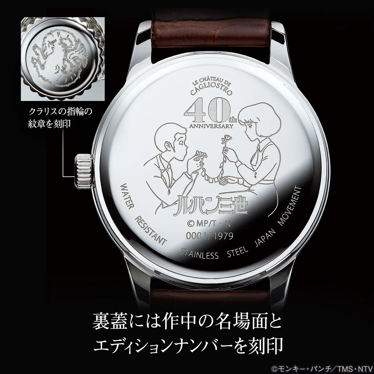 初公開の1979年にちなんだ限定1979点のプレミアムモデルで、裏蓋にルパンとクラリスの出会いの名シーンと、世界にひとつのエディションナンバーが刻まれます。