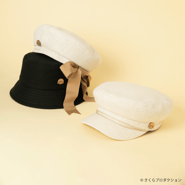 「ちびまる子ちゃん」のガーリーな雰囲気を、春らしい生地感のファンシーヤーンを用いたベレー、バケットハット、マリンキャップの3型で表現。カジュアルからキレイめまで、幅広いコーディネートに対応する大人かわいいデザインに仕上げています。