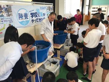 “陸養”プロジェクト実行委員会は、全国6地域7つの小学校(青森・千葉・東京・富山・愛媛・長崎)の児童たちに「陸上養殖」の体験を通して命の大切さや、水産資源の貴重さ・自分たちが住む地域の海の問題について学んでもらう取組みを行っています。これは、次世代へ海を引き継ぐために、海を介して人と人とがつながる“日本財団「海と日本プロジェクト」”の一環で、「いのちの授業」を通して、海や海の生命について子供達に考えてもらい、海を未来へ引き継ぐ行動のきっかけづくりを目的としており、昨年に続き2度目の開催です。