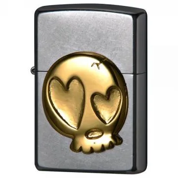 ダメージ感のあるストリートクローム仕上げの本体に、大型のドクロメタルが施された立体感のあるZippoライター。ストリートクローム仕上げで、傷や汚れが付きにくく耐久性に優れています。このキュートスカルメタルシリーズは全部で4種類。