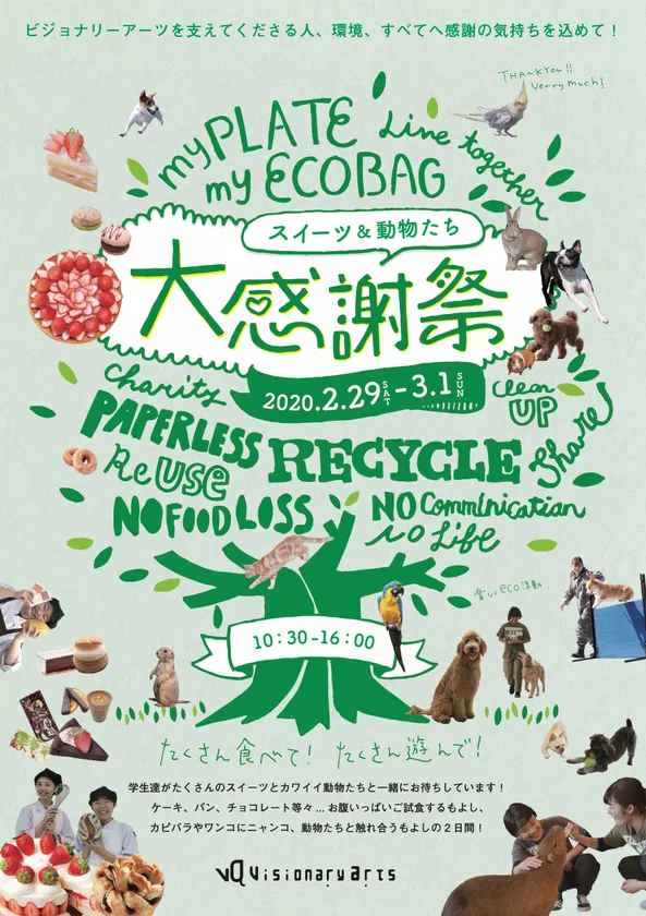 学校法人安達文化学園 専門学校ビジョナリーアーツ(所在地:東京都渋谷区、理事長:安達 建之)は、ビジョナリーアーツを支えてくださる人、環境、すべてに感謝の気持ちを込めて渋谷本校舎にてたくさんのスイーツと動物たちと楽しめる「大感謝際」を開催します。