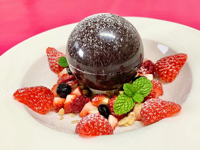 内容 :ドーム型のチョコレートの中に、完熟いちごやアイスをトッピング。