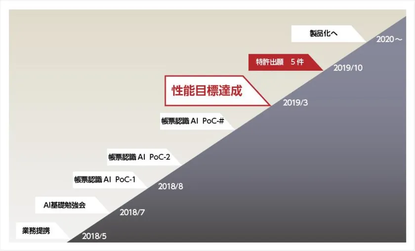 一般的なAI開発プロジェクトでは、初期のPoC(概念実証)段階で頓挫してしまうことも少なくないと言われています。本プロジェクトでも初回PoCには失敗したものの、その後失敗原因の精査やAIモデルの設計方針を転換するなど、粘り強く開発を継続した結果、帳票構造の認識AIにおいて目標の認識率を達成できました。これはエンジニアの技術力だけでなく、両社の経営層がAIの重要性を深く理解してマネージメントを推進したことも大きな要因です。
