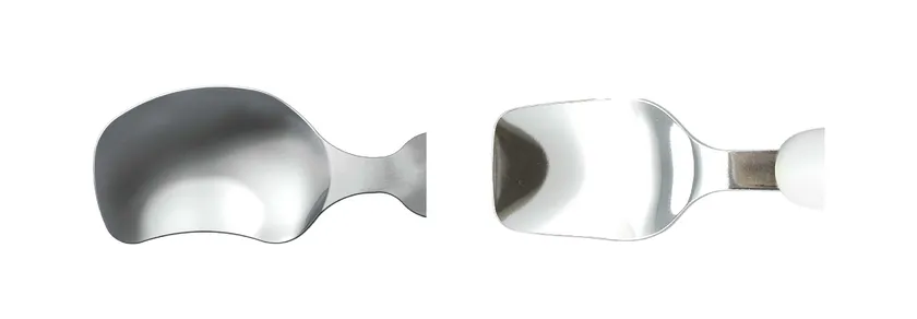 スプーンの平らな3つの面がお皿に密着することで、ヨーグルトなどトロトロしたものもお子様でも隅々までキレイにすくえます。