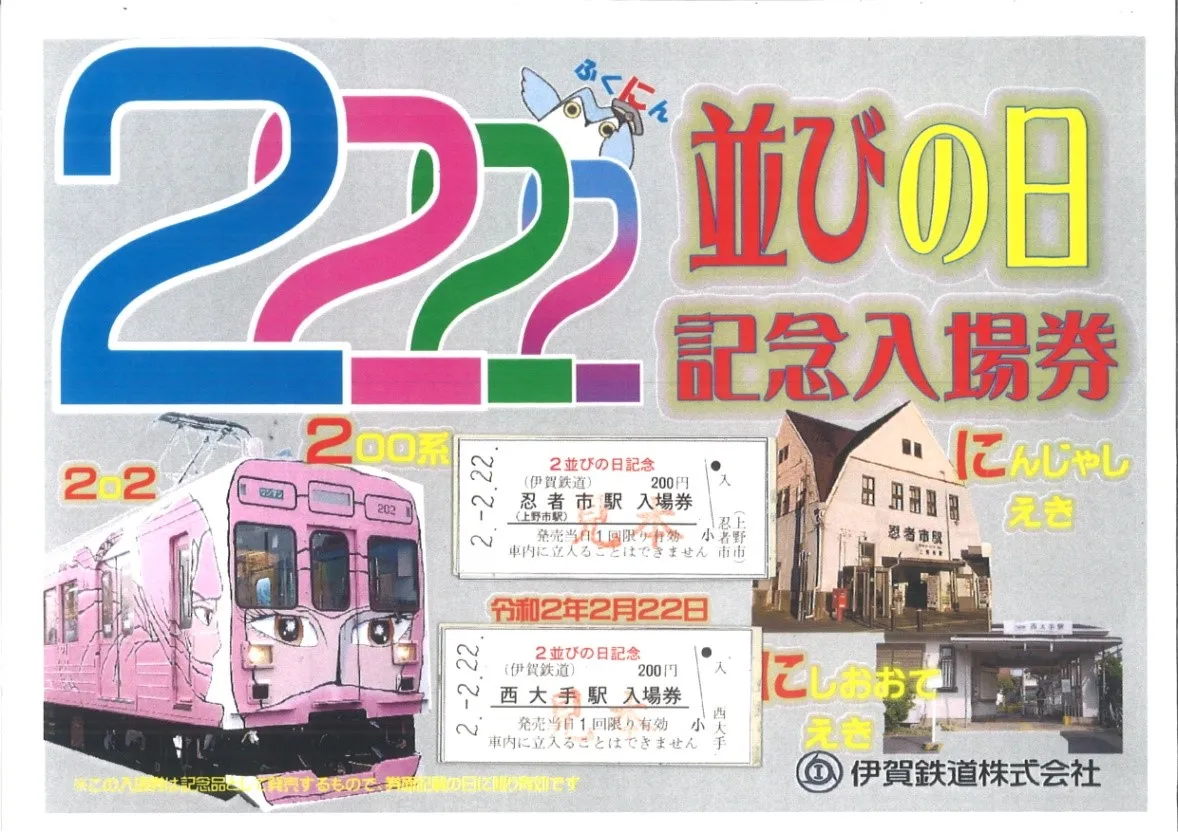 伊賀鉄道では、令和2年2月22日に「2並び」となるのを記念して『2並びの日