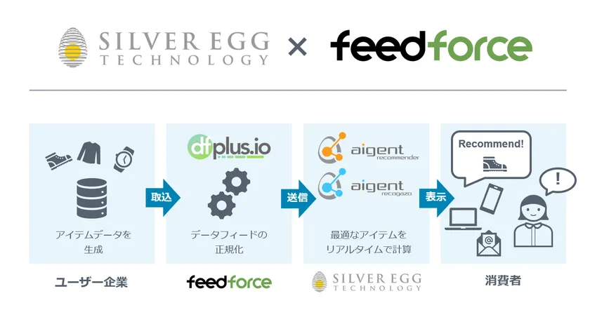 AI用データの取得が簡単に! シルバーエッグ・テクノロジーのレコメンドサービスが フィードフォースのデータフィード管理ツール「dfplus.io」に対応