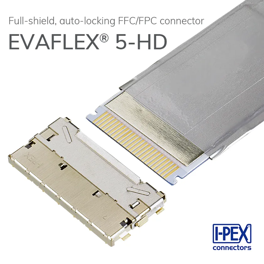新製品EVAFLEX(R) 5-HDは、360°フルシールド EMI対応の、オートロック機構付き高速伝送用FFCコネクタです。コンタクトテールおよび嵌合側からのEMI漏れを防止するフルシールド構造により、他のコンポーネントとのノイズ・信号干渉リスクが軽減され、基板上の配置自由度が高まります。さらに、多点グランド接点で、従来のNon-ZIFコネクタよりも安定した信号品質を保ちます。
