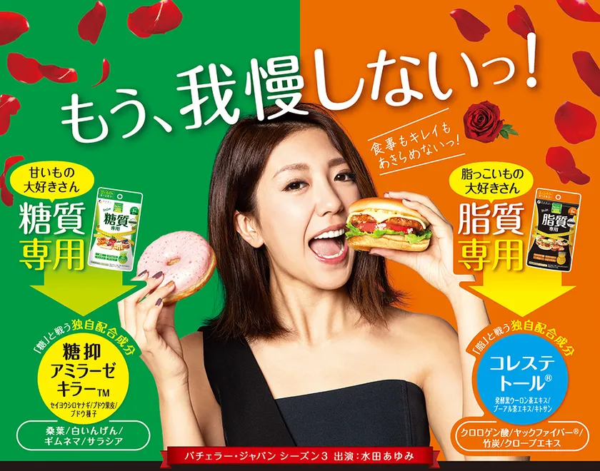 イメージキャラクターには『バチェラー・ジャパン』 シーズン3出演の水田あゆみさんを起用! 食べたい気持ちを応援するサプリ 『カロリー気にならない糖質専用・脂質専用』発売