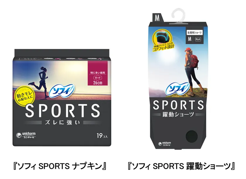 そこでこの度、“ズレ”や“動きモレ”の解決を実現した『ソフィSPORTSナプキン』と、ナプキンのショーツとのズレを解決する『ソフィSPORTS躍動ショーツ』を2020年4月7日より全国で新発売します。