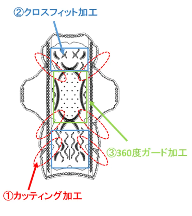 このような中、当社は研究を重ね、ソフィで初めて広葉樹パルプを使用し、独自の3Dファイバー加工により繊維同士を接合した“ズレに強い”吸収体の開発に成功しました。