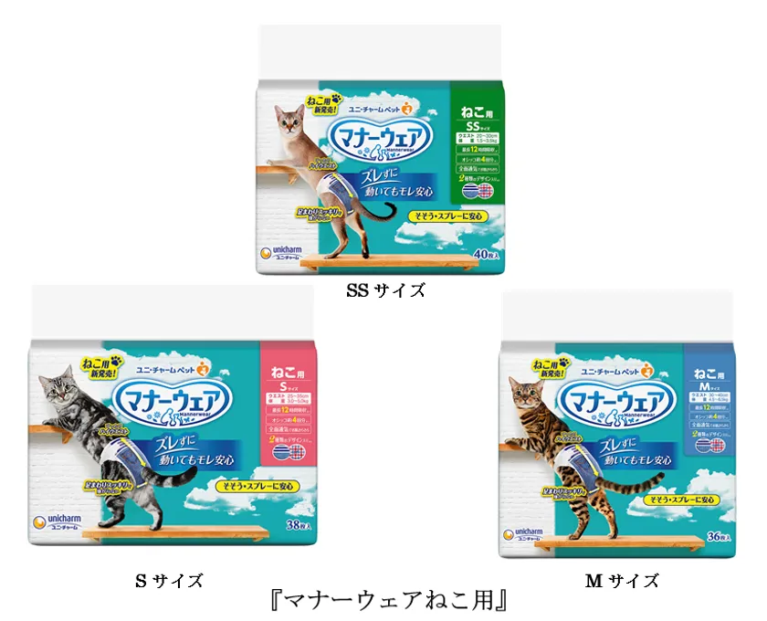 そこでこの度、ねこ特有の体型や柔軟な動きに対応し、排泄トラブルを解決する“ねこ用吸収ウェア”「マナーウェアねこ用」を2020年3月9日より全国で新発売します。