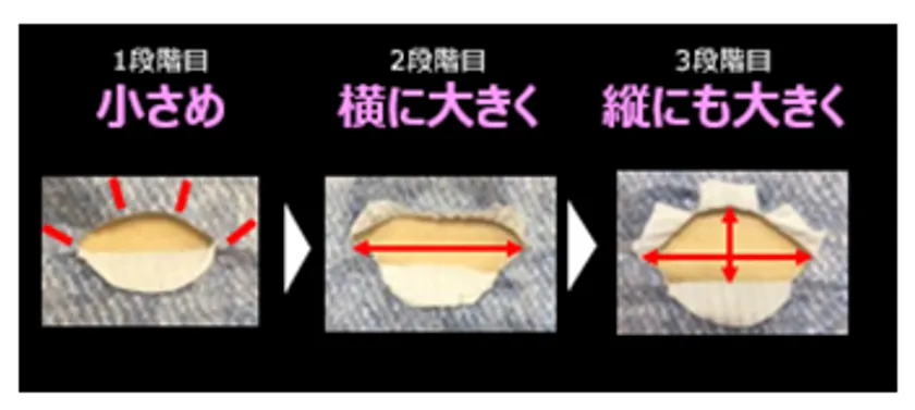 ・シッポ穴にある4箇所の切り込みにより、横にも縦にも大きさを調整できるため、シッポ穴からの尿モレを防ぎます。