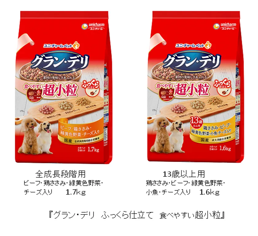 体が小さめな超小型犬・小型犬にぴったりの 『グラン・デリ ふっくら仕立て 食べやすい超小粒』 2020年3月9日全国にて新発売