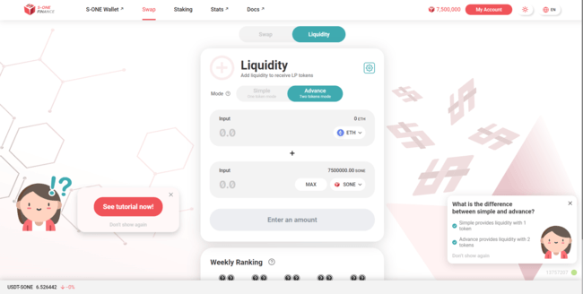 DEXを含む多くのDeFiサービスは、リテラシーが高くない方にとってはまだまだ操作が難しいという課題があります。そこでS-ONE Financeではチュートリアル機能を搭載し、リテラシーがそこまで高くない方にも操作方法がわかりやすいというメリットがあります。