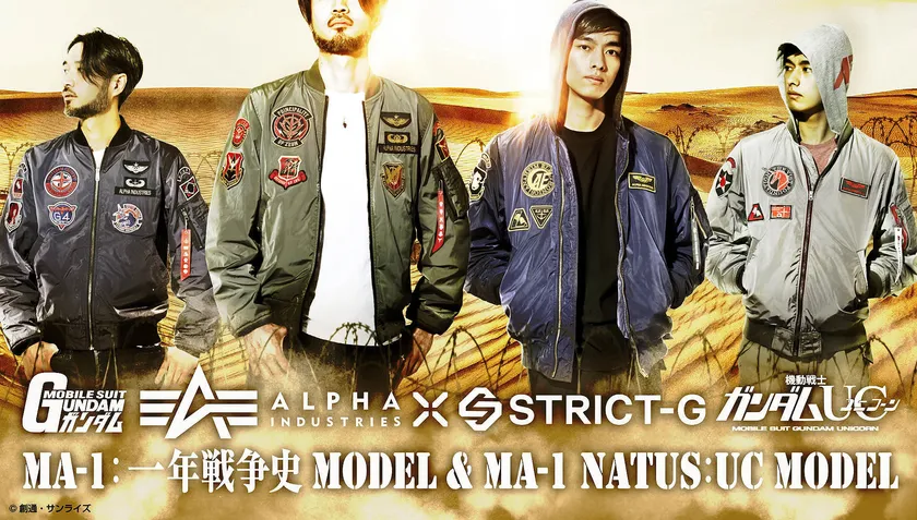 株式会社バンダイ アパレル事業部では、ガンダムの世界観を取り入れたアパレルショップ「STRICT-G(ストリクト ジー)」にて、ミリタリーファッションブランド“ALPHA INDUSTRIES(アルファ インダストリーズ)”の代表的アイテムであるフライトジャケット「LIGHT MA-1(ライトエムエーワン)」と『機動戦士ガンダム』とのコラボレーションモデル2型と、「LIGHT MA-1 NATUS(ライトエムエーワンナトゥース)」と『機動戦士ガンダムUC』とのコラボレーションモデル2型の計4種(LIGHT MA-1 『機動戦士ガンダム』一年戦争史 地球連邦軍モデル / ジオン軍モデル 各35,200円 税込/送料・手数料別途、LIGHT MA-1 NATUS 『機動戦士ガンダムUC』バナージ・リンクスモデル / リディ・マーセナスモデル 各34,100円 税込/送料・手数料別途)を発売します。