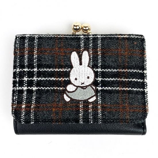 チェックといえば派手なイメージを持っている方もいるかもしれませんが、今回ご紹介するのは大人も持ちやすいチェック柄。ブラックやブラウンが混ざった絶妙なカラーが、大人っぽい上品さも演出しているミニ財布です。真ん中にはステップを踏んでいるミッフィーが。