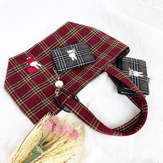 小さいバッグにもすっぽり入る!ミッフィ×タータンチェックの小ぶり財布。この色合いがドンピシャなんです♪