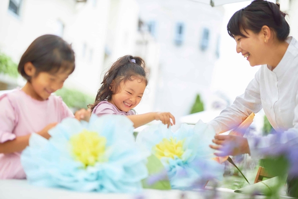 長さ45センチ以上の大きなペーパーフラワーを作る、小さなお子様も参加可能なワークショップを開催。ピンクやオレンジなど、カラフルなペーパーの花びらを丁寧に広げて、世界にひとつだけの花が完成します。完成後はお花を持って散策や、お気に入りのスポットで写真撮影も楽しむことができます。家族で過ごすひとときに華やかさを添える、春らしい体験です。