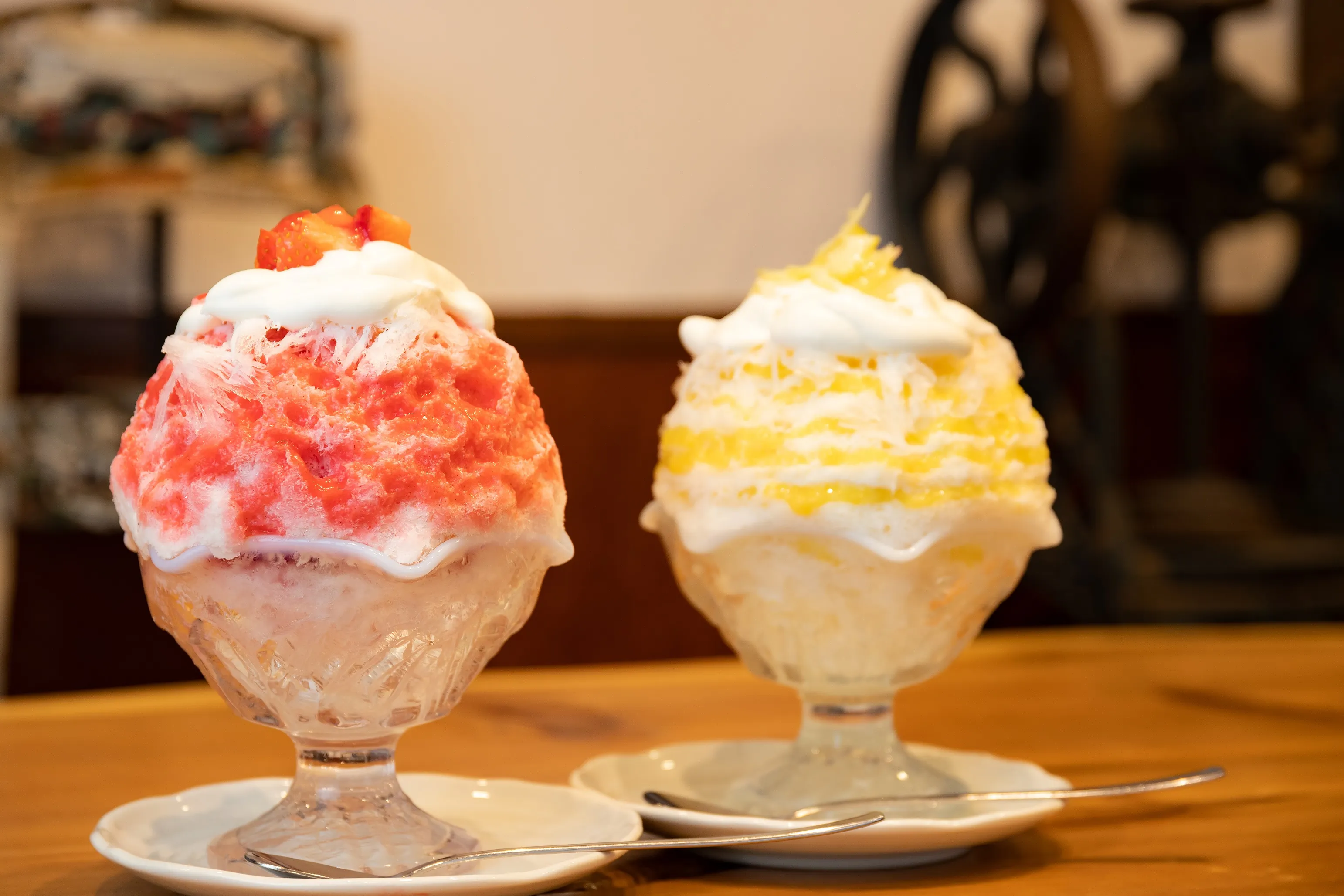 フレッシュな果物を使った甘いかき氷はもちろん、「わさび」や「カレー」などを使った独特なかき氷も人気の秘密。