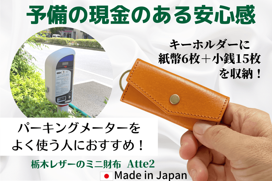 とっさの現金払いのシーンで活躍するミニ財布「Atte」の第2弾。栃木レザーバージョンが登場です。